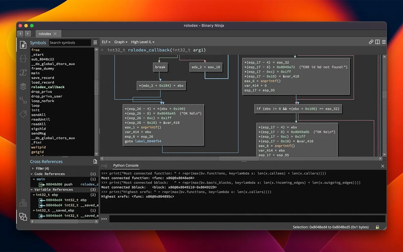 Automate anything – Our extensive API can be used to create and customize loaders, add or extend architectures, customize the UI, or automate any workflow (types, patches, decompilation… whatever!). Bindings are available for C++, Python, and Rust.