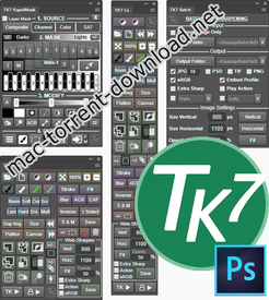 Multiple masks/multiple sources−The TK7 panel is much more than just a luminosity mask panel. Channel, color, saturation, and vibrance masks are created just as easily as luminosity masks, and entire spectrums of these pixel-based, self-feathering masks can be generated. The SOURCE menus makes it easy to choose different pixel data as the starting point for making masks
