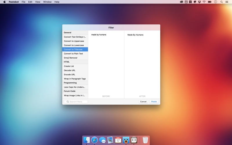 Build powerful filters with a live preview and apply them as you paste. Create keyboard shortcuts to quickly paste using your filters and export your filters to share with other Pastebot users.