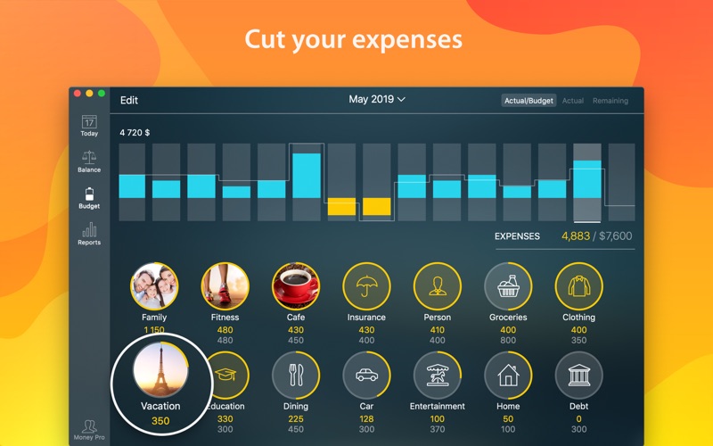 - You can set different budget limits for every period, which is useful if you plan to reduce your spending gradually month by month.
