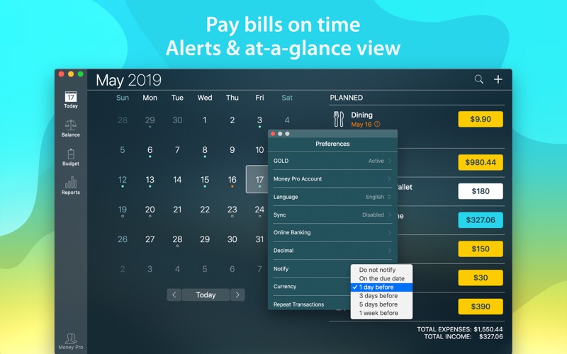 - Money Pro predicts transactions for the day that may not have been scheduled manually.
