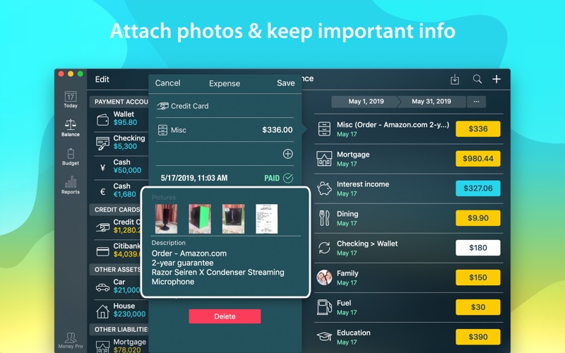 Money Pro is the one place for bill planning, budgeting and keeping track of your accounts. Easy sync with iPhone/iPad versions. Money Pro works great for home budgeting and even for business use.