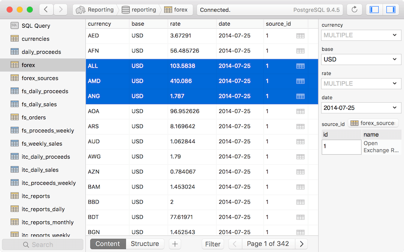 But the best part of Postico is how well it works. Postico is made on a Mac for a Mac. It works great with all your other Mac apps. Use all the usual keyboard shortcuts. Postico gets the basic things like copy/paste just right, and also supports more advanced features like services for text editing.