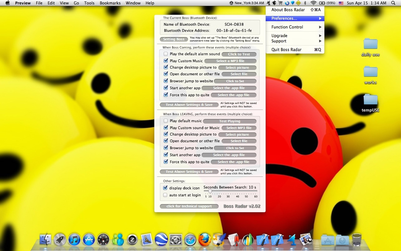 Most people nowadays, especially people such as your boss, carry some sort of Bluetooth device (earpieces, smartphones, etc…) on their person at all times. And whether the device is in use or not, the Bluetooth signal is always being emitted. It’s like this huge loudspeaker announcing the device owner’s presence everywhere he walks (because people always name their devices with some easily identifiable name lie “Dave’s Phone”). Boss Radar constantly scans for this signal. Because it is not very strong, if it does find the target device, that means the device (carried by the boss, in this case) is getting too close, and it would then warn you with a signal. In addition to the alarm, the app can also quickly and automatically change your wallpaper, stop your music, switch your browser to something work-related, open up documents, and even kill undesired apps (Warning: loss of game progress may occur!) to convince your boss of your innocence, god-like focus, utter devotion, and, most of all, the worthiness of promotion (I mean, isn’t that the whole point of pleasing the boss, to begin with?). Considering the higher salary associated with this prospect, Boss Radar is certainly worth the price.