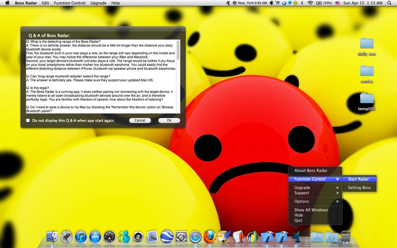 The best part is, Boss Radar can be useful even outside of work. Use it on your wife, or maybe your kids, or maybe on that girl you met a couple of weeks ago but cannot seem to run into anymore… the list is endless.