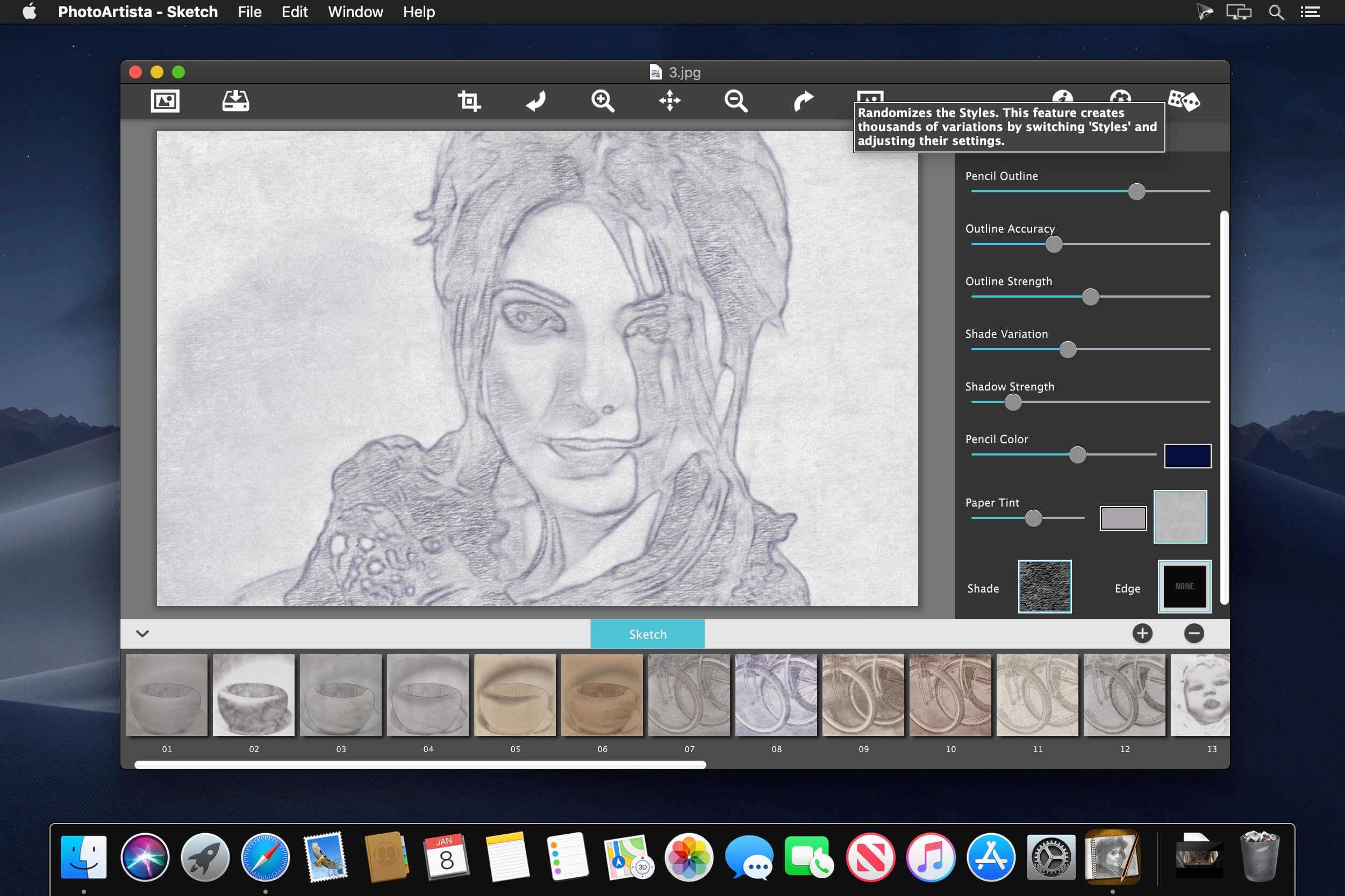 FEATURES Fully adjustable control on all aspects of the process: Pencil Outline, Outline Accuracy, Outline Strength, Shade Variation, Shadow Strength, Stroke Texture and Pencil Color