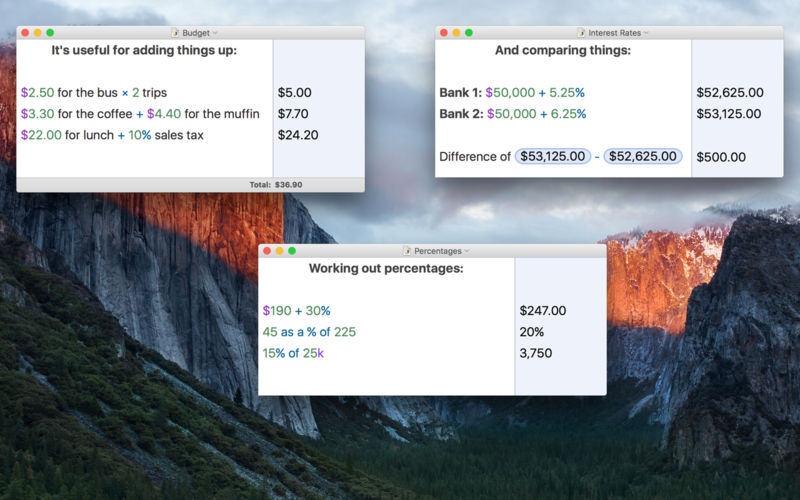 Soulver is great for adding things up, doing all kinds of percentages easily, and converting things, like currencies. It’s quicker to use than a spreadsheet, and smarter and clearer than a traditional calculator.