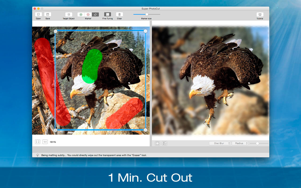 • Smart algorithm: Cuts object out with critical precision; it enables extremely fast operation with great results on any image, minimizing the amount of work you need to put in