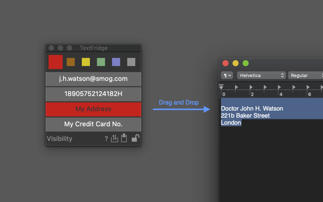 Drag texts from anywhere to a line of TextFridge, drag texts from a line of TextFridge to anywhere.
