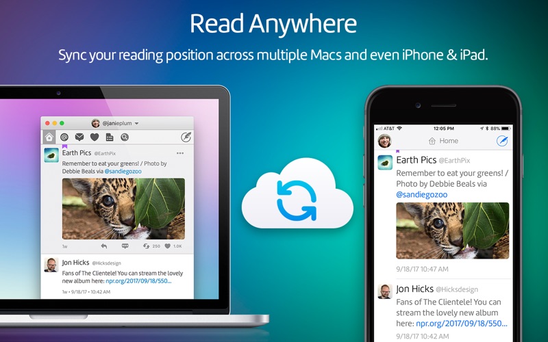 Whether you use Twitterrific on your iPhone, iPad, or another Mac, the app automatically syncs your reading position for a seamless Twitter experience.