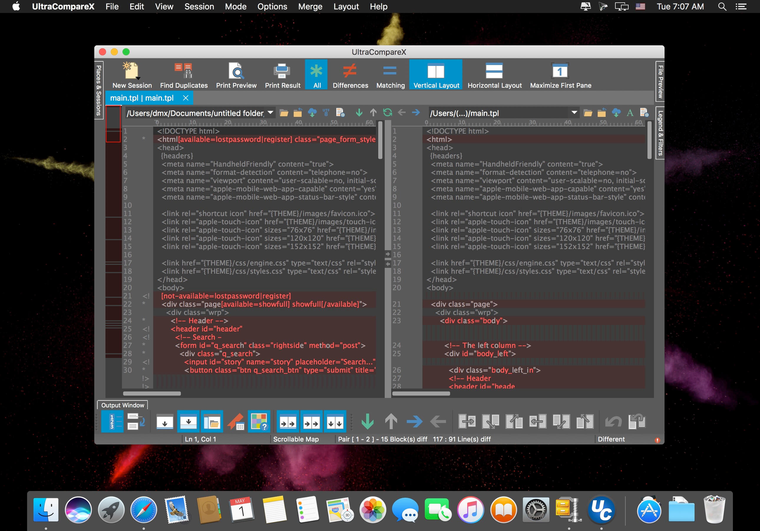 UltraEdit for Mac makes it easy to load a file straight from the editor and right into UltraCompare for Mac.