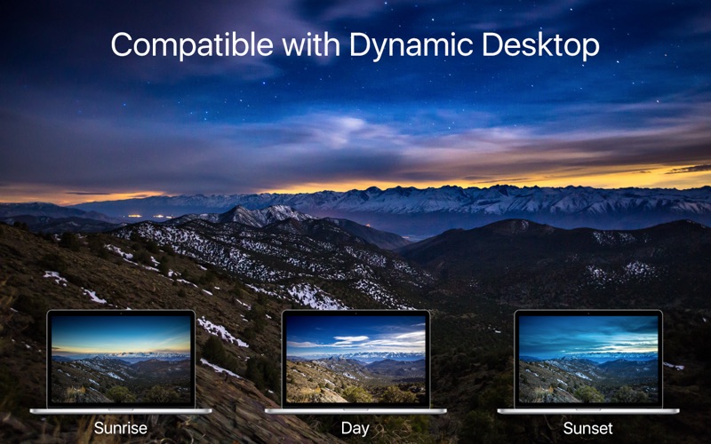 Enjoy wallpaper that reflects the time of day where you are or adjust time preferences to fit your schedule and lifestyle. Compatible with Mojave Dynamic Desktop as well as macOS versions 10.11 and later (El Capitan and later).