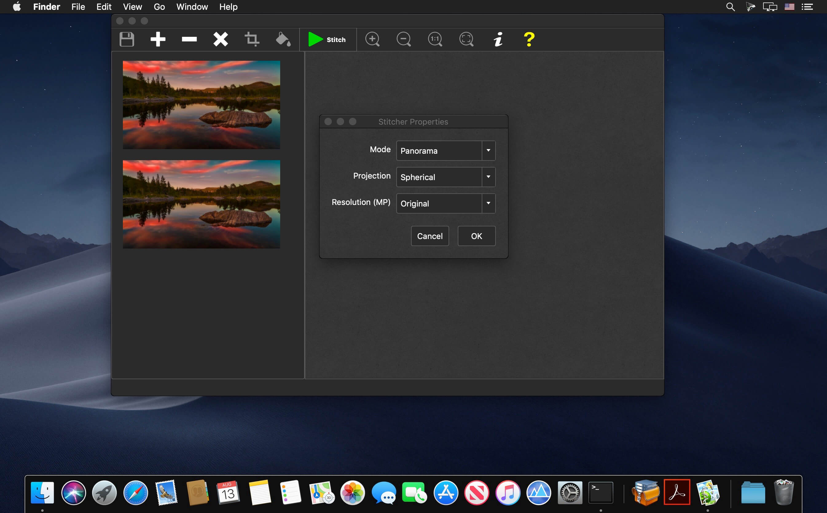 - Simple and intuitive interface. Just select images and click “Stitch”