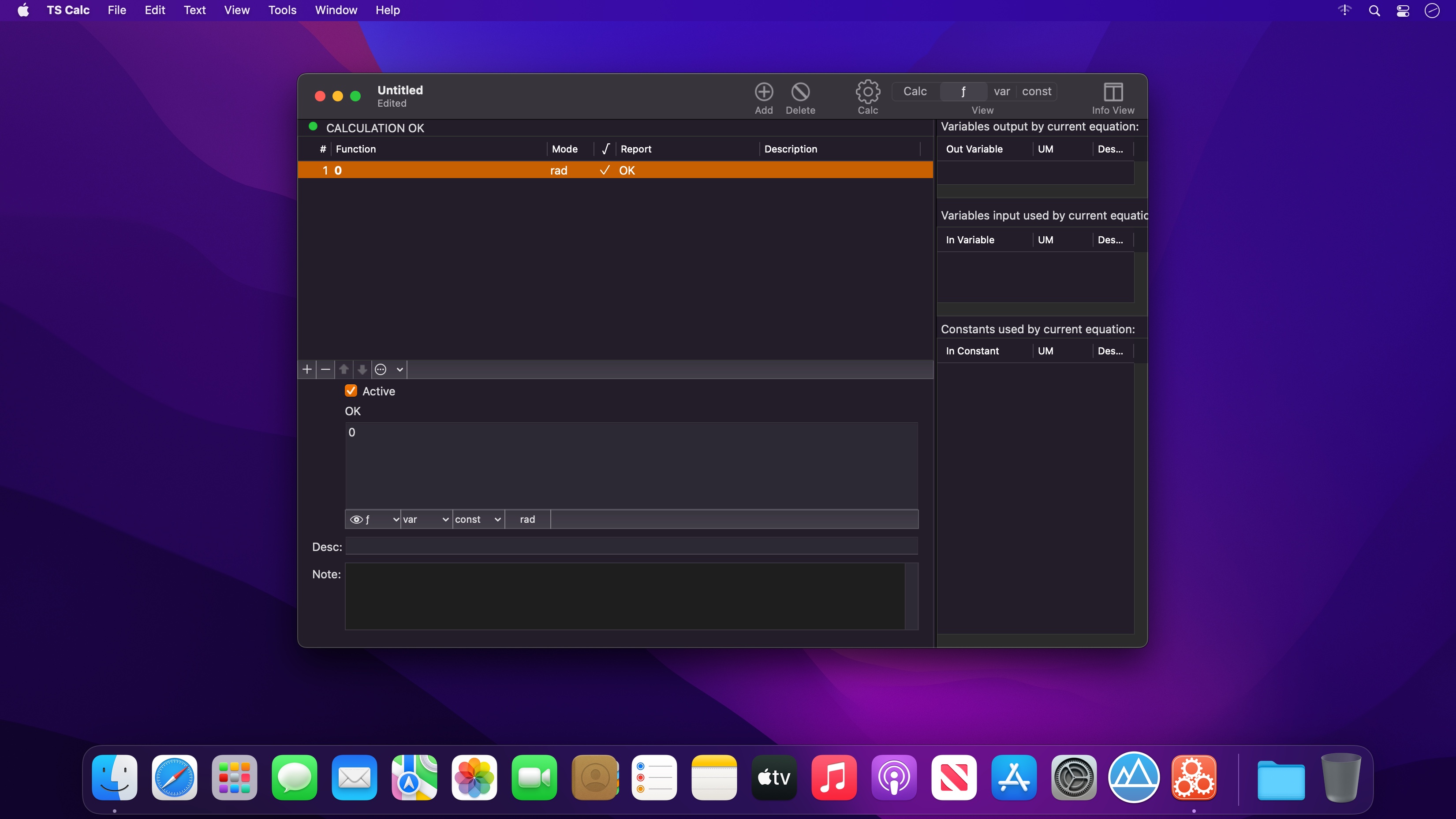 The mathematical equations tool. TS Calc implements numeric resolution of calculation models you can use for any mathematical technical problems. It is a complete different approach to solve math problems respect to the usual one using a spreadsheets.
