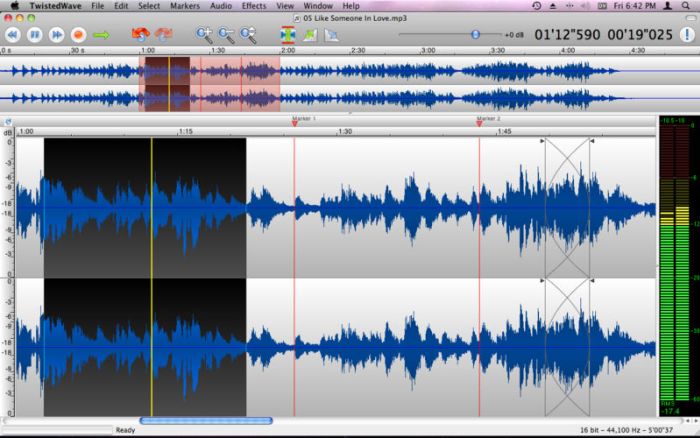 - Working at a resolution up to 24-bit and 192 kHz sampling rate, TwistedWave enables you to work at a professional quality.