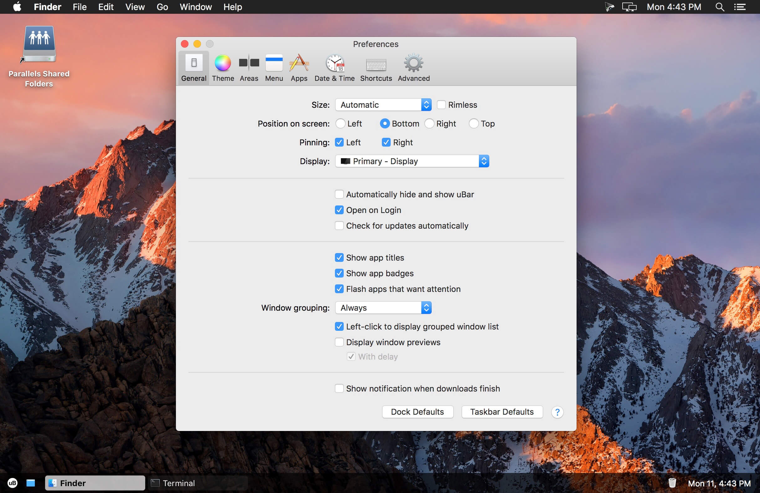 ApplicationsuBarUtilities uBar 4.1.6 by mac torrent May 1, 2020 May 1, 2020 ( uBar 4.1.6 )Loading... Download uBar is the Dock replacement. If you’ve never really liked the Dock, or have a soft-spot for the Windows Taskbar, uBar is here to save the day. uBar can be configured as a dock or task bar for macOS. Features Favourites area (including Show Desktop and Trash) Expands up to 5 rows (by dragging the edge) Application Badges are readable unlike the Dock’s Customizable uBar menu Activity Mode: hold Ctrl key to show Application CPU and Memory usage Group Windows by Application (Always, Never, Automatic) Light or Dark theme Works on OS X 10.11 Compatibility: OS X 10.10 or later 64-bitHomepage https://brawersoftware.com/products/ubar Screenshots Name: uBar_4.1.6__TNT_Mactorrents.io.dmg Size: 10 MB Files uBar_4.1.6__TNT_Mactorrents.io.dmg[10 MB] Download Related Posts:uBar 4.2.3 Download mac torrentmac torrentsuBar 0 comment TwitterRedditEmail mac torrent MacTorrent - Torrents in Mac. Free Apps, Games & Plugins. Apple Final Cut Pro & Logic Pro X, Adobe Photoshop, Microsoft Office, Pixel Film Studios, previous post Wondershare Filmora 9.4.7.1 next post RapidCart Pro 4.17.2