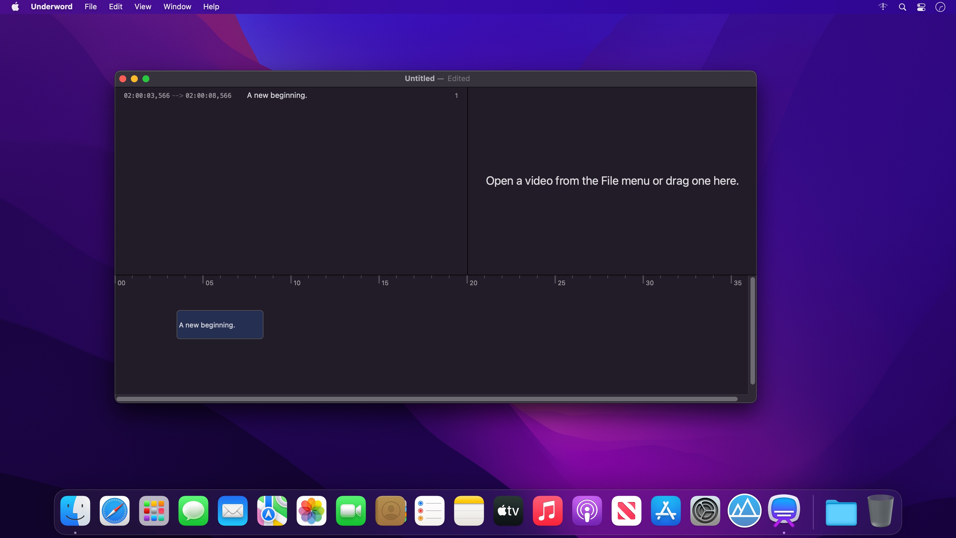 To unlock the full potential of Underword, select a video to show alongside the editor. The subtitles will be automatically shown on top of it. If you can open the video in QuickTime, you can open it in Underword.