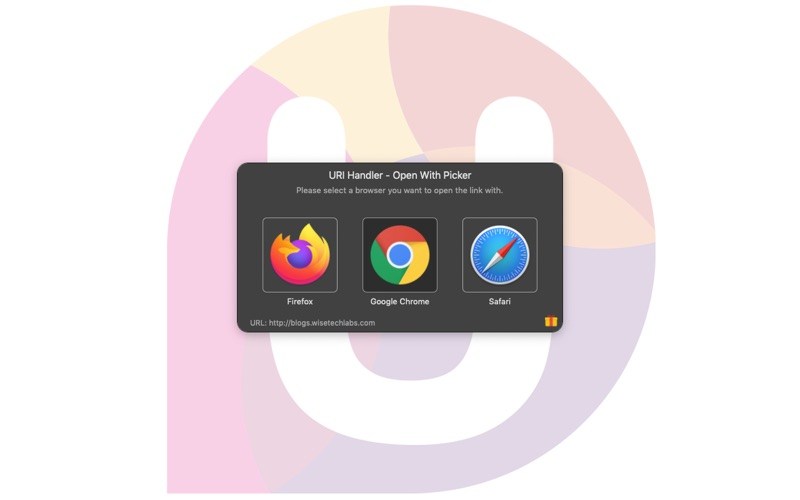 When you click any URL outside your Web Browser, “URI Handler – Open With Picker” will present you a beautiful list of all installed browsers to seek your choice and open the link in the chosen browser.