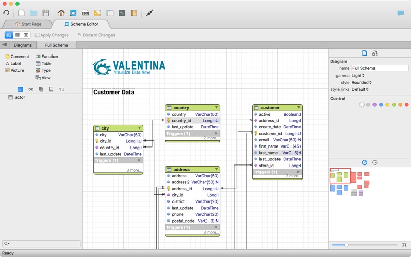 • Diagram Editor – design new diagrams or do reverse engineering, e.i explore existing databases visually.