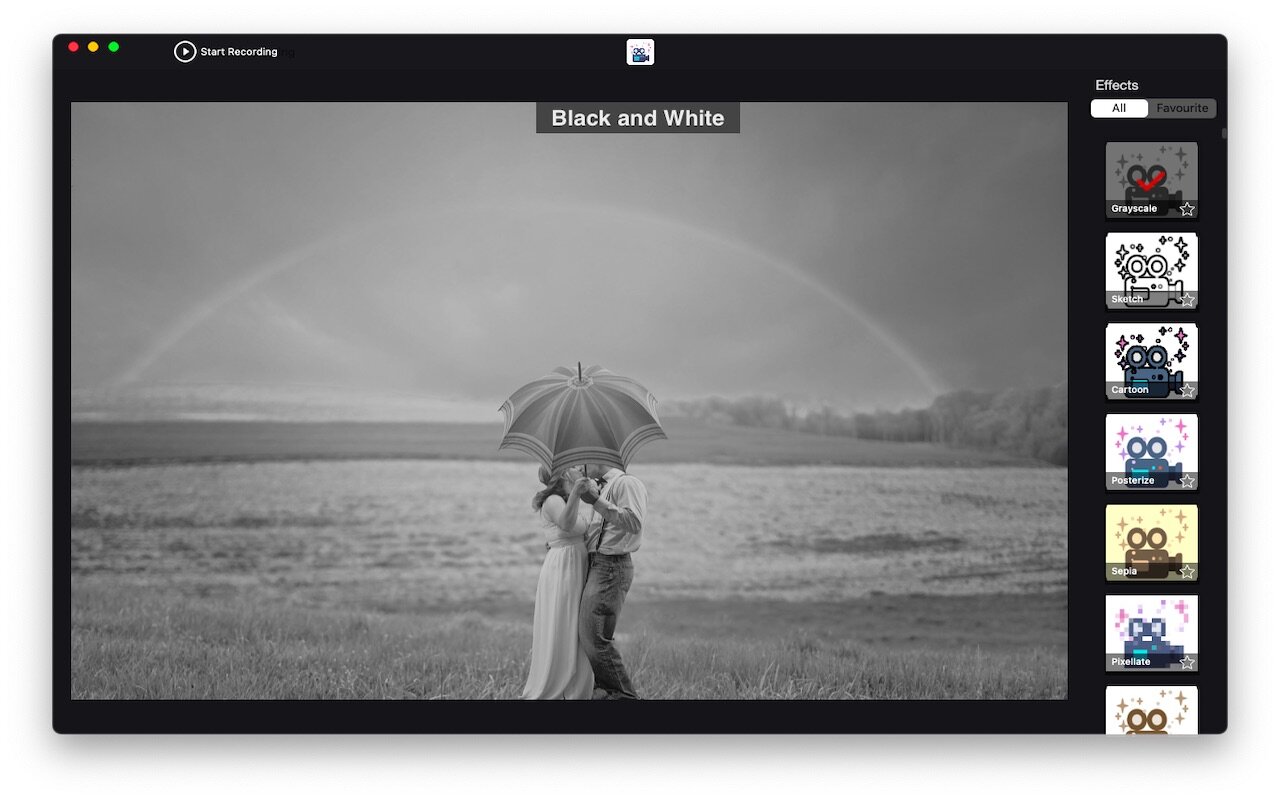 Large number of eye catching filters like Black and White, Cartoon, Pixellate, Vignette, Sketch etc. to make your video capturing look stunning.