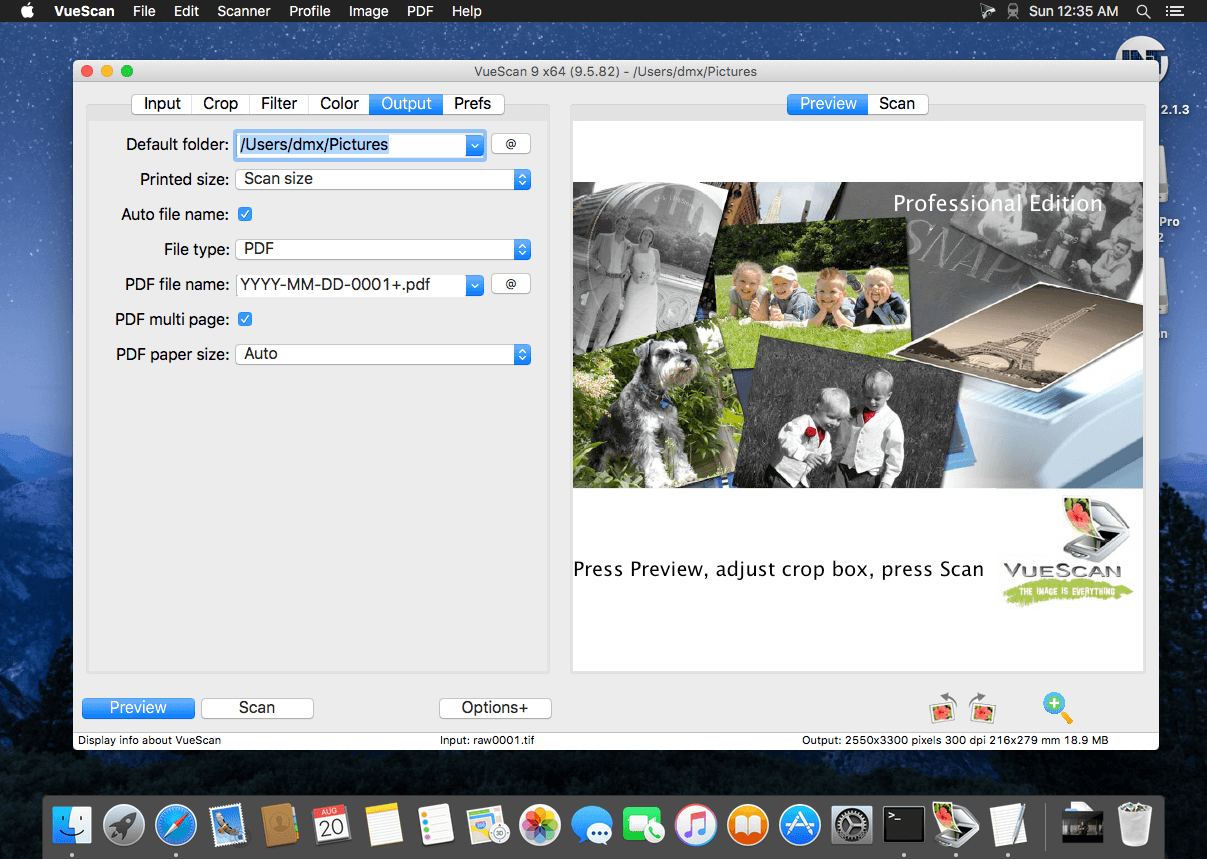 Easy to use – just run VueScan, press Preview, adjust the cropping, then press Scan.