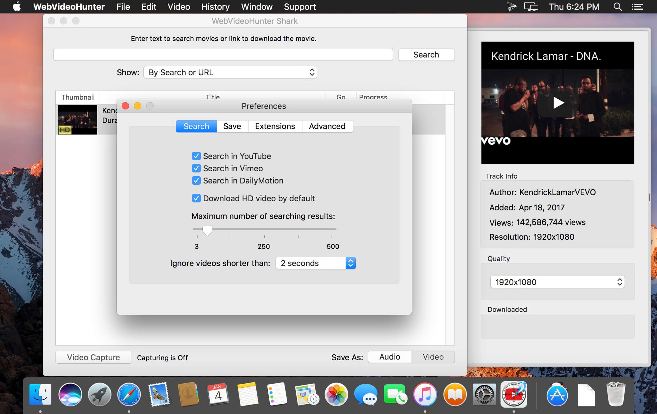 It takes only seconds to find and download videos from YouTube, Vimeo, DailyMotion, VEVO and others. WebVideoHunter downloads videos 15x faster than real time playing and supports simultaneous downloads.