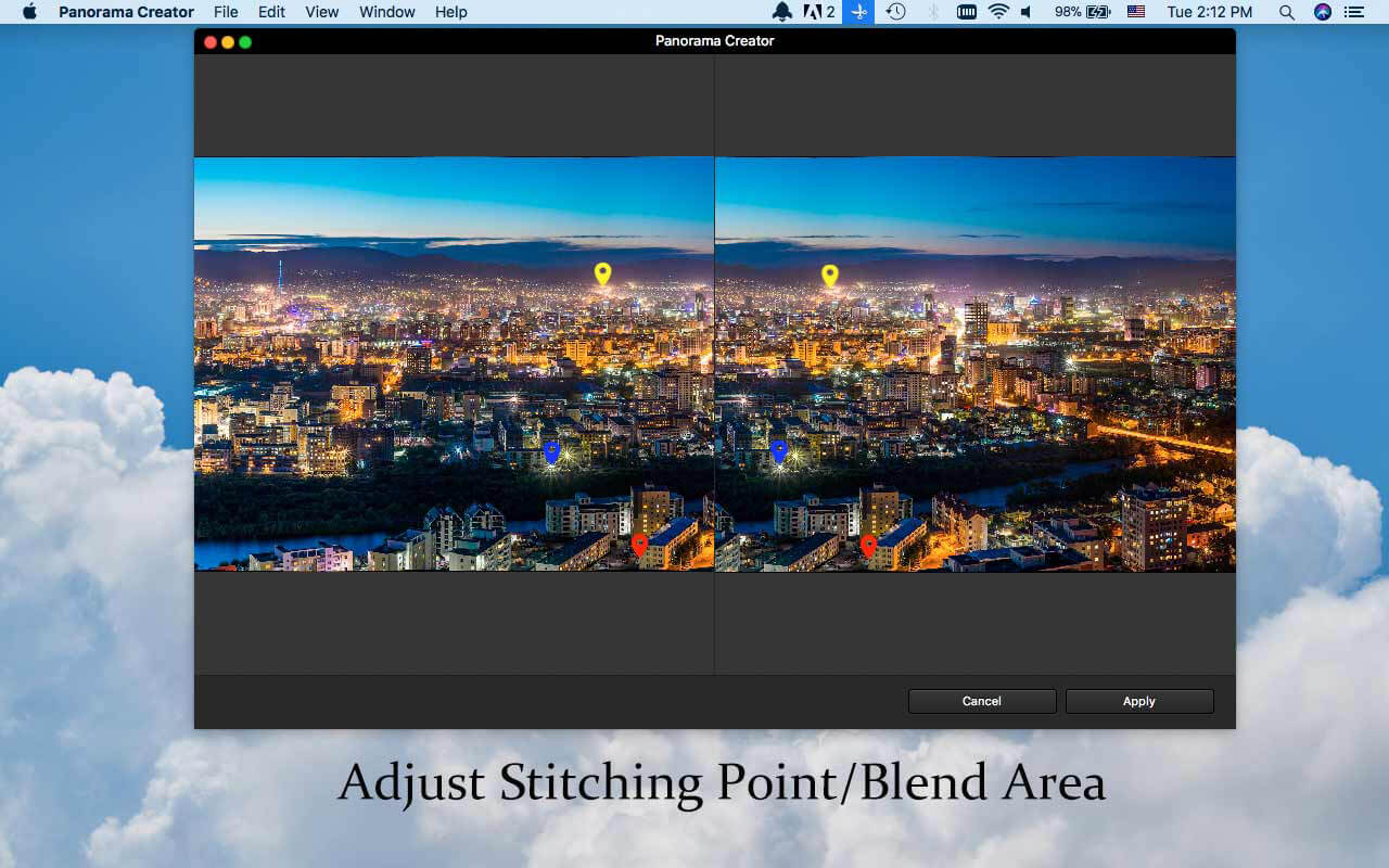 Adjust the Align Points to correct the stitching angles of different images. When you need to composite images in tile, you should adjust the align points to make a perfect panorama. In order to remove the ghost parts, you can adjust the blend to have a better result.