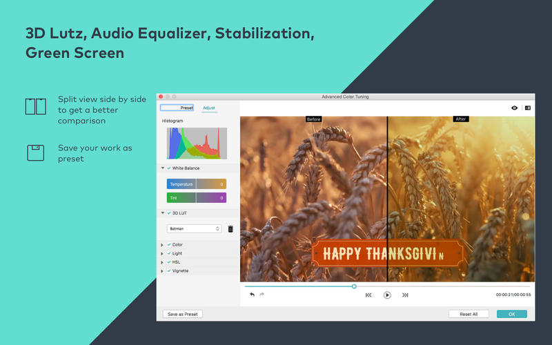 Change the aesthetic of your video with one click. Filmora9 has both creative filters and professional 3D LUTs.