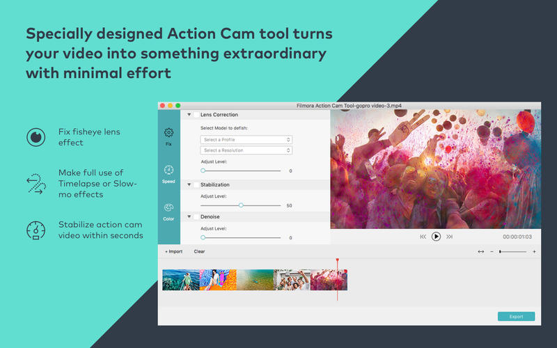 Fix common action cam problems like fisheye and camera shake, and add effects like slow motion and reverse.