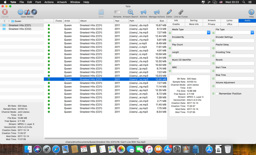 MusicYate Yate 5.0 by mac torrents September 17, 2019 September 17, 2019 ( Yate 5.0 )Loading... Download Download A powerful yet easy to use Mac application designed to help you create a comprehensive metadata databasefor your audio tracks. Yate is an easy to use macOS application that offers you the proper tools for tagging and quickly organizing your music collection. The utility is able to work with MP3, M4A, AIFF, WAV, DSF, and FLAC files, and you get to import tracks for processing, or simply link items from your iTunes music library. Well structured music tag editor that can deal with various types of metadata Yate is able to import metadata for your tracks from online sources, such as MusicBrainz, or Discogs, but you can also manually edit each entry. The app enables you to change the credits and album details, the artwork, the lyrics, allows you to store private characteristics, such as the owner or the purchase price and so on. The best part is that, if you link items from your iTunes library, the changes will be reflected almost instantly within the media player. This is very useful because you will be able to organize your tracks by different criteria with minimal effort. Automate the database management by using actions scripts, and share your tagged tracks with your friends Yate comes with a collection of over 100 actions scripts that can be easily employed to streamline certain tasks: the app comes with a small collection of actions already integrated with the app interface, but you can easily create new ones by using the predefined functions. For your convenience, Yate offers you the possibility to export your current project in order to be able to share the newly created metadata database with your friends in no time. Straightforward software solution for tagging audio tracks with minimal effort Yate offers you the possibility to create a comprehensive metadata database by quickly importing information and even artwork from online sources. At the same time, the app enables you to store personal details, such as the purchasing info, your private ratings, can memorize if you want to skip the track when shuffling, and so on. Information CompatibilityOS X 10.9 or later, 64 bit LanguagesEnglish Web SiteDeveloper Website What’s New in Yate 5.0 Note: Ready for macOS 10.15 Catalina Bug Fixes: The Episode ID field’s synthesize function was not working correctly. The MusicBrainz wizard will now correctly import multiple Composers, Lyricists, Remixers and Conductors. Yate was using non standard frames to store Movement Name, Movement Number and Movement Count. At least they weren’t the same non standard names that iTunes uses. This was irrelevant if you are using iTunes and auto-exporting the Classical Metadata. v5.0 reads both mappings and writes the more standard ones. The Set as Key Column menu item in database viewers was not always working. Opening database files via File>Open or Finder Open-With as opposed to dragging them in, potentially closed open unmodified files. The Access Discogs and Access MusicBrainz statements’ custom table context menu access to the import settings manager was disabled. Fixed a bogus Log>Validation Errors message in MPEG-4 files with video and long description fields. If a number of files were selected of which only some were linked, Refresh iTunes would display errors for the files not linked. The Beatport Importer could hang on a network error. The Beatport Importer now silently ignores 404 errors when retrieving artwork. The test used to determine if Safari is the default browser did not work on Mac OS 10.9. Full changelog available here. Screenshots Name Yate 5.0 TNT mac-torrents.net.dmg Size 21.41 MB Created on 2019-09-17 06:31:54 Hash 95c87b5ec534f826566609c957525d765b910092 Files Yate 5.0 TNT mac-torrents.net.dmg (21.41 MB) Download Related Posts:Yate 6.13Yate 6.13.0.1Yate 6.13.1Yate 6.18 Download Yate 0 comment TwitterRedditEmail mac torrents Mac Torrents - Torrents for Mac. Free Apps, Games & Plugins. Apple Final Cut Pro & Logic Pro X, Adobe Photoshop, Microsoft Office, Pixel Film Studios, previous post PeakHour 4.1.6 next post SnapMotion 4.3.3