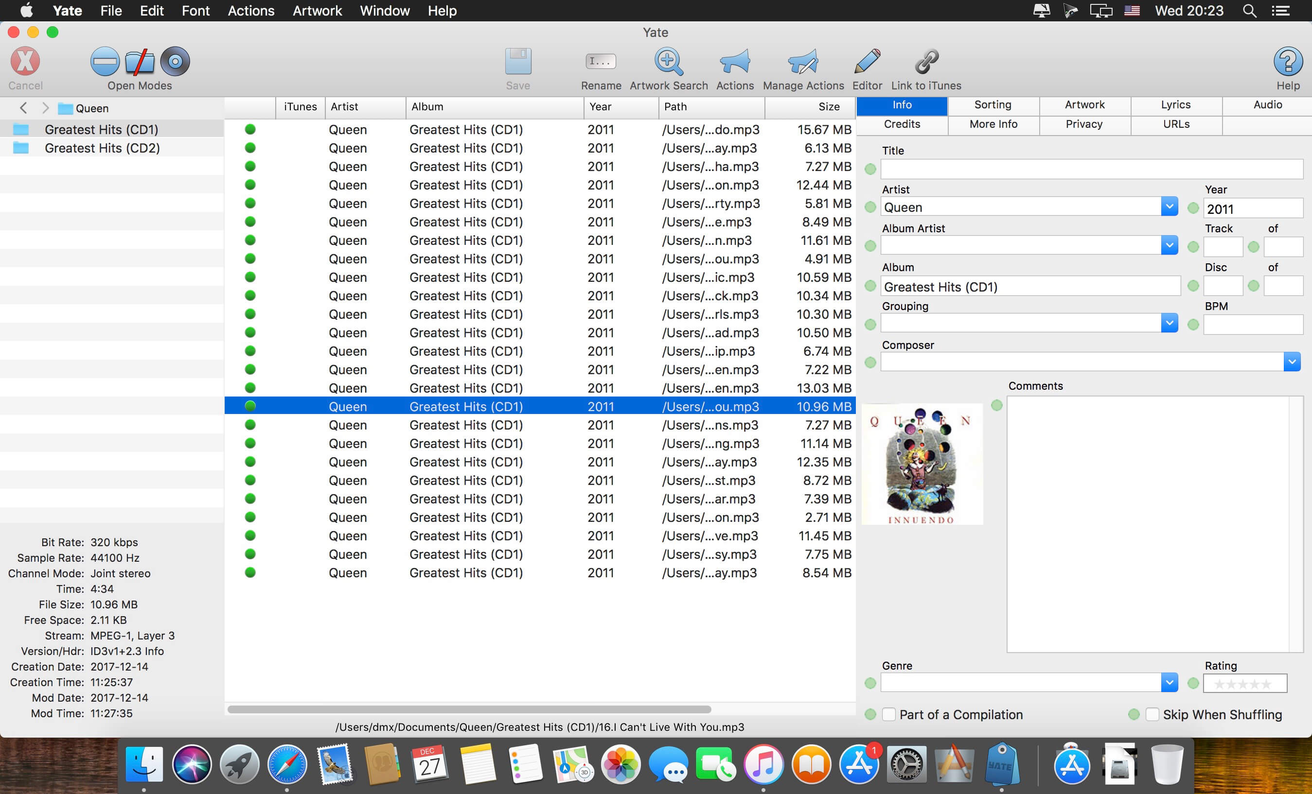 Yate has a long list of features; most importantly, an innovative scripting system called actions. Actions can be used to update all of an album’s tags with a single operation. Yate also supports integration with AcouticBrainz, AcoustID, Beatport, Discogs, iTunes and MusicBrainz. All changes can be easily reverted and individual changes can be undone in any order. Whether you want to automatically or manually tag your files, Yate can do it all!